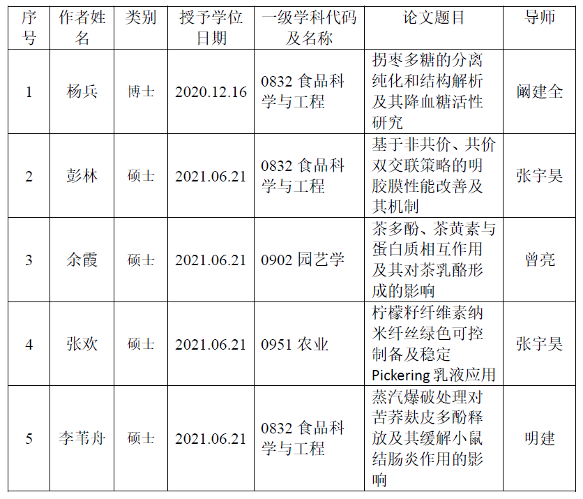 食品科学学院关于2022年重庆市优秀学位论文推荐结果公示