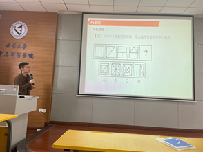 活动第二阶段,邓老师举例了往年重庆每个区的录取分数情况,带领同学们一起分析探讨,告诉同学们要认清自己、定好目标。在此过程中,邓老师选取了一些考公经典例题,就如何做出理性判断、如何结合材料多角度分析问题、如何运用材料内容做好题等问题做了具体的示范。同时还给同学们推荐了一些与考公相关的资料查询网站。