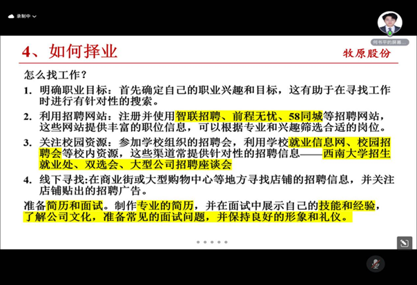 为帮助食品科学学院2021级本科生合理规划未来,明确发展方向,锚定努力目标,解决实际困惑,2024年3月29日至31日,学院按照专业于线上分别开展了“2021级职业发展实践计划”系列活动之“学长学姐说”经验交流分享会,2021级各专业学生及部分低年级学生踊跃参加。