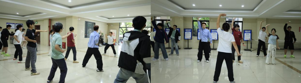 活动现场,教练从太极的文化内涵、基础动作要领入手,为同学们进行了系统讲解与标准示范。从起势、云手到野马分鬃,教练逐一拆解动作细节,耐心纠正同学们的姿势,引导大家体会太极“以意导气、以气御形”的核心要义。参与学生全神贯注、认真练习,在舒缓的节奏中调整呼吸、放松身心,不仅掌握了基础太极招式,更在动静之间感悟到中华传统养生文化的智慧。