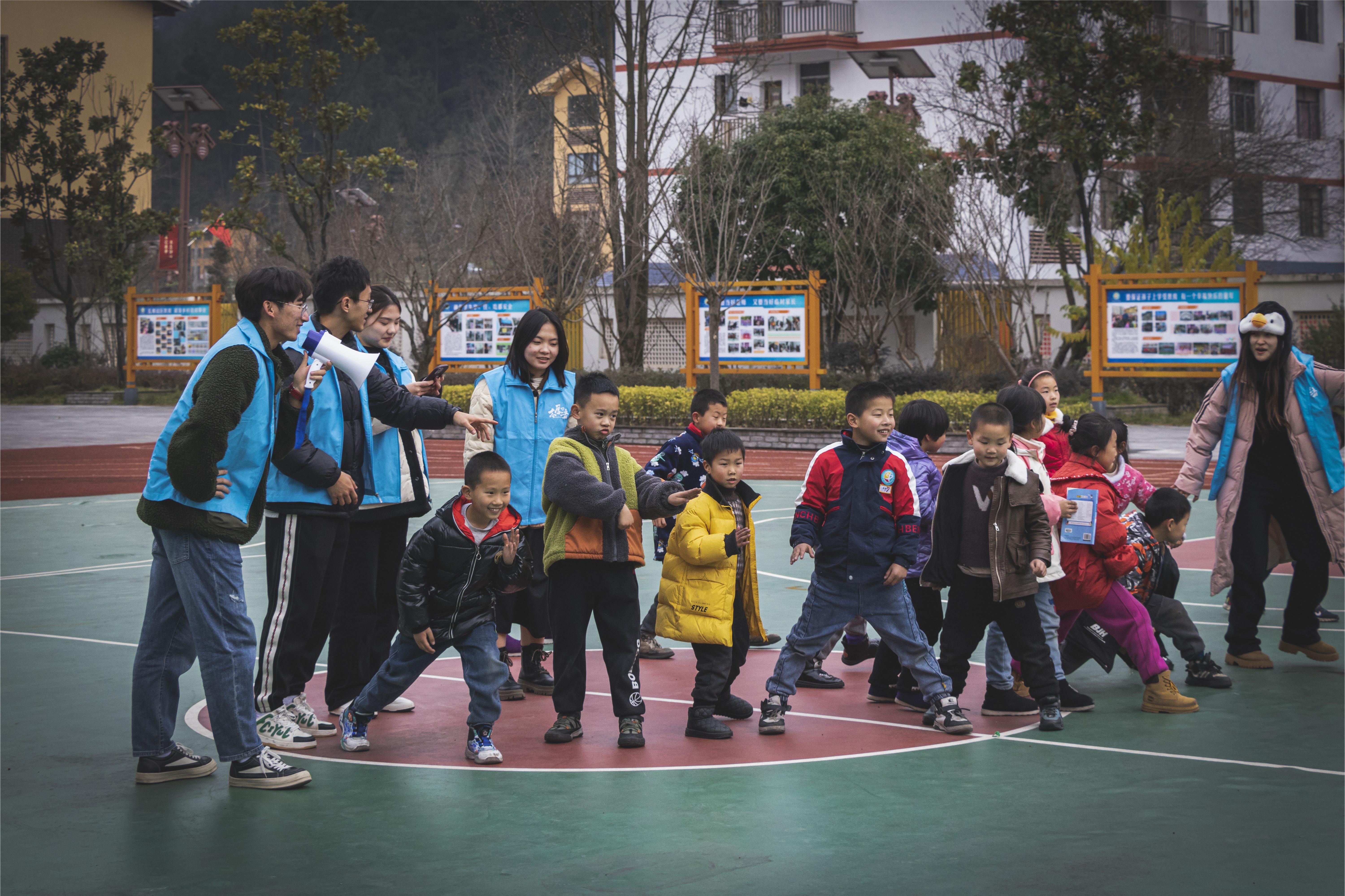 实践队成员们先对小朋友们进行简单的伸展运动教学以达到热身的效果,在短暂的互相接触中拉近彼此之间的距离,大家逐渐变得熟稔。接着队员们带领小朋友们学习一段简单的舞蹈,通过该舞蹈既锻炼身体也加深了和小伙伴们之间的友谊。借此教学活动大家也期望小朋友们在日常的学习生活中要加强身体锻炼,强健的体格才是学习的源源动力。同时也提醒小朋友们在日常生活的锻炼中,需要注意安全,希望大家不仅要提升健康意识更要注重安全意识。