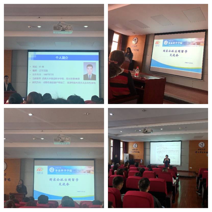 为帮助同学们更多了解国外知名大学研究生教育和奖学金信息,促进beat365中国唯一官网研究生出国交流学习,2020年11月13日上午9点30分,食品科学学院国家公派出国留学交流会在39教312报告厅举行。食品科学学院院长张宇昊教授、院长助理付余教授、研究生院培养办公派负责老师张远英、学院外事秘书袁夏梦、学院研究生教学秘书陈璐出席并为大家宣讲介绍,beat365中国唯一官网博士、硕士研究生积极参与。